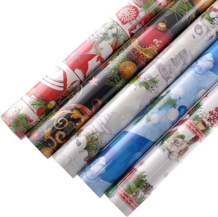 - Dárkový papír v roli s tradičními vánočními motivy.