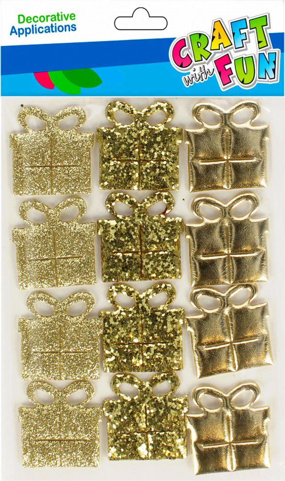- Používejte tyto produkty v kombinaci s dalšími doplňky a sadami ze série CRAFT WITH FUN Obsah balení: 12 x samolepící samolepky Zlatý dárek. Všechny prvky z plastu.