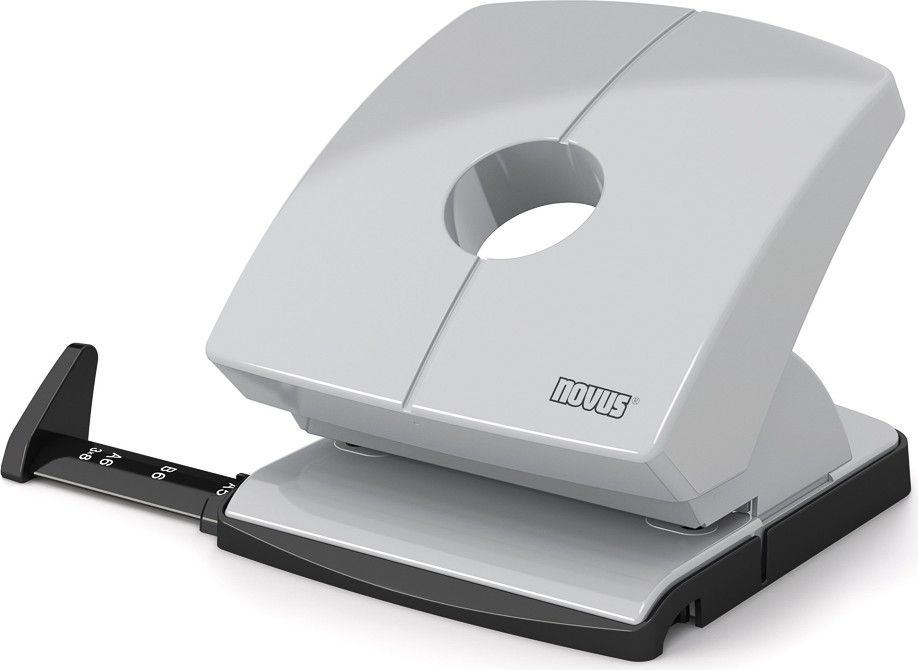 Výkonná kancelářská děrovačka pro profesionální použití. Potištěné posuvné pravítko pro snadné formátování. Dělené výklopné dno z měkké pryže usnadňuje manipulaci s odpadem. Celokovová s plastovým opláštěním.