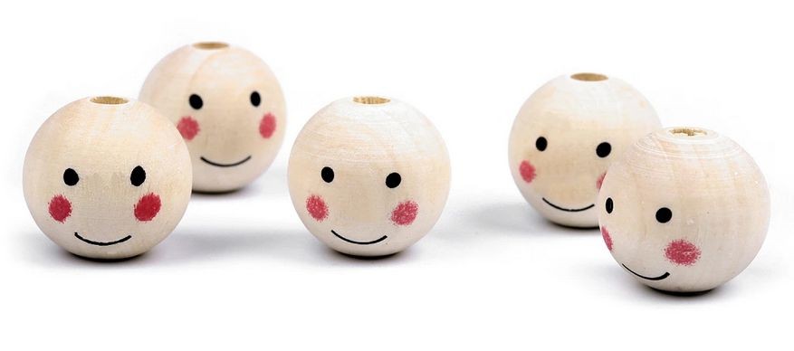 Dřevěné korálky s obličejem Ø25 mm, 5ks