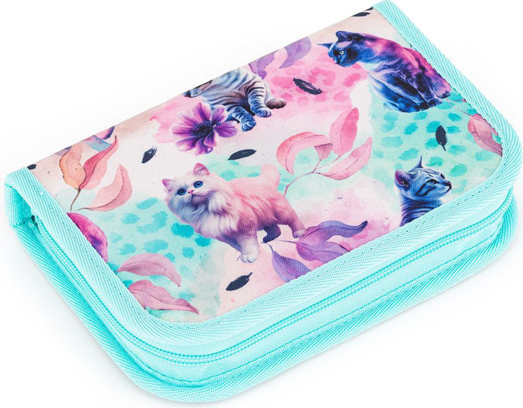 Jednopatrové školní pouzdro se dvěma klopami. Díky gumovým úchytům se do nich vejde celkem dvacetjedna pastelek, tužek a fixek. Tři širší úchyty poslouží na pravítko, kružítko či nůžky. Dva větší na gumu a ořezávátko.