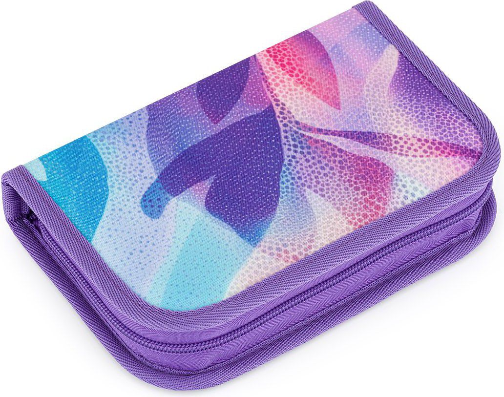Jednopatrové školní pouzdro se dvěma klopami. Díky gumovým úchytům se do nich vejde celkem dvacetjedna pastelek, tužek a fixek. Tři širší úchyty poslouží na pravítko, kružítko či nůžky. Dva větší na gumu a ořezávátko.