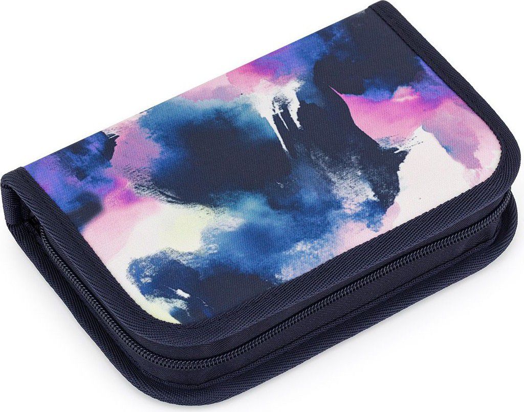 Jednopatrové školní pouzdro se dvěma klopami. Díky gumovým úchytům se do nich vejde celkem dvacetjedna pastelek, tužek a fixek. Tři širší úchyty poslouží na pravítko, kružítko či nůžky. Dva větší na gumu a ořezávátko.
