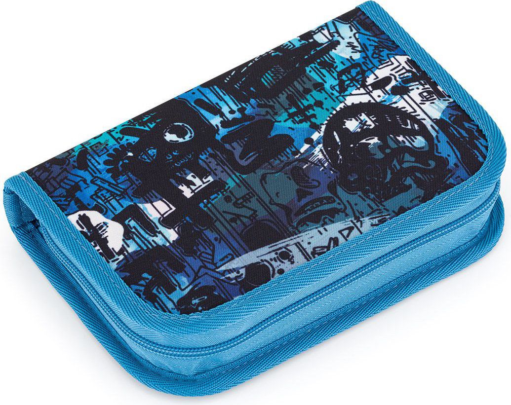 Jednopatrové školní pouzdro se dvěma klopami. Díky gumovým úchytům se do nich vejde celkem dvacetjedna pastelek, tužek a fixek. Tři širší úchyty poslouží na pravítko, kružítko či nůžky. Dva větší na gumu a ořezávátko.