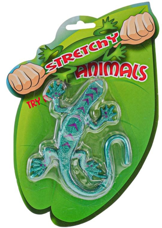 - Měkké a pružné natahovací zvířátko z gumy, na kartě, ve třech variantách provedení (žabička, had, ještěrka).