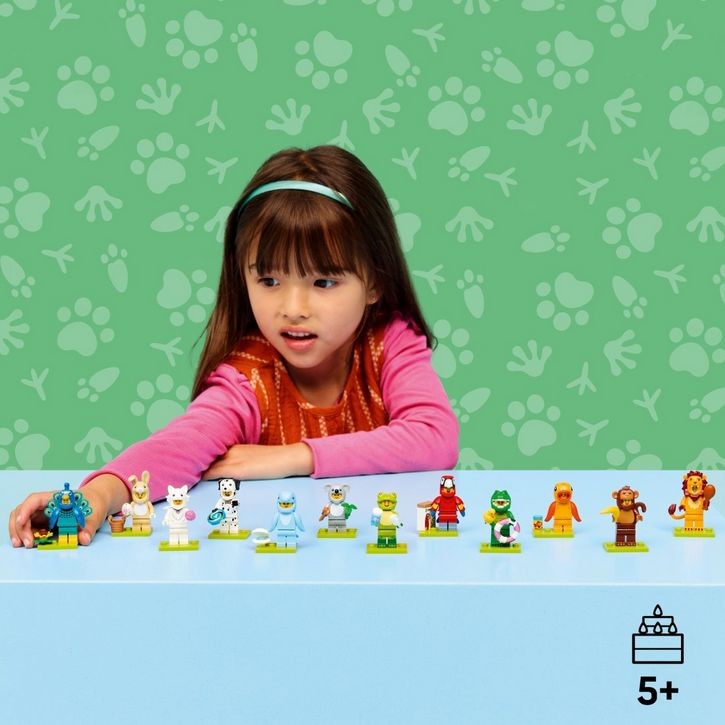 Holky a kluci od 5 let se mohou pustit do vymýšlení zábavných příběhů s 1 z 12 sběratelských figurek z tajemných krabiček s překvapením, které obsahují zvířecí hračky z řady LEGO® Minifigurky 28. série - zvířata. V každé krabičce s překvapením najdete 1 minifigurku LEGO. Celkem můžete posbírat 12 postav, včetně figurek v kostýmech papouška, lva, žáby, krokodýla, dalmatina, zlaté rybky, roztomilého králíčka, páva, chlupaté kočky, koaly, delfína a opice. Každá z 12 minifigurek je usazena ve vlastní zapečetěné krabičce a vlastní alespoň 1 doplněk. Tyto propracované roztomilé zvířecí hračky můžete přidat do své stávající sbírky, hrdě je vystavit nebo si s nimi hrát na zábavné příběhy. Potěší malé milovníky zvířat a přírody a inspiruje je k vymýšlení příběhů a nekonečným hodinám hraní o samotě nebo s kamarády.