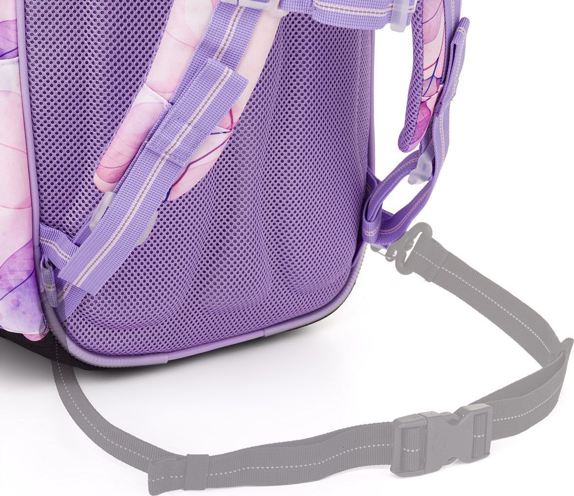 Do prostorné zadní komory doporučujeme ukládat nejtěžší učebnice nebo desky na sešity, směrem k přední části pak lehčí věci. Přední komora je užší, obsahuje praktickou síťovou kapsu na zip a jmenovku. Ideálně se hodí na penál ve stejném designu nebo box na svačinu. Do boční kapsy pohodlně vložíte lahev ZIVA s objemem 0,5 litru.