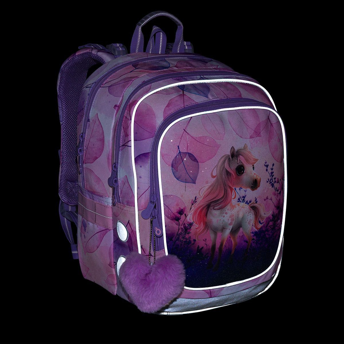 Lehoučký dvoukomorový model ENDY neváží ani kilogram a perfektně padne drobným školákům od první do třetí třídy ZŠ. Díky roztomilému motivu koníka a hebkému přívěsku srdíčka se stane oblíbeným společníkem každé malé princezny.