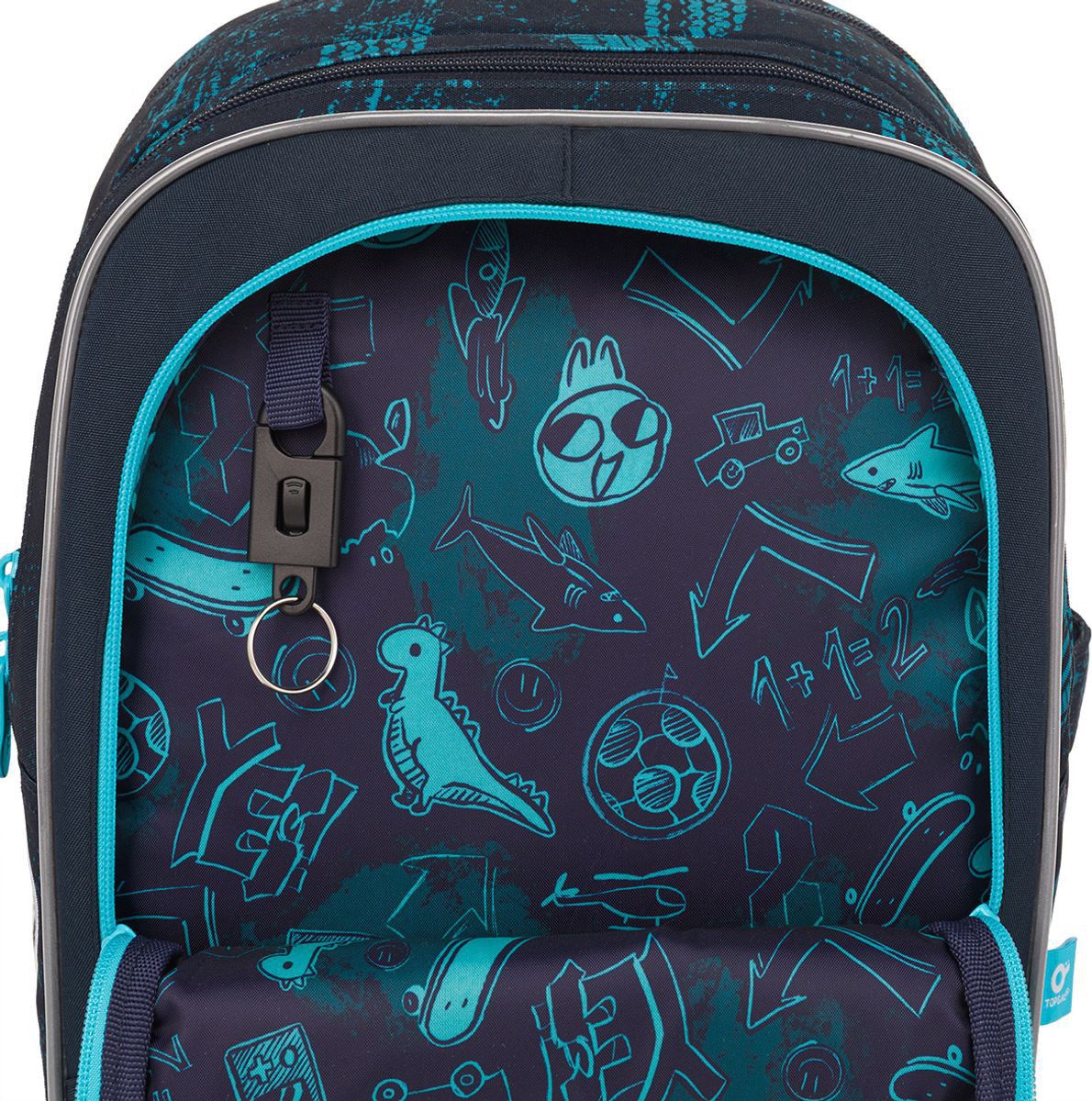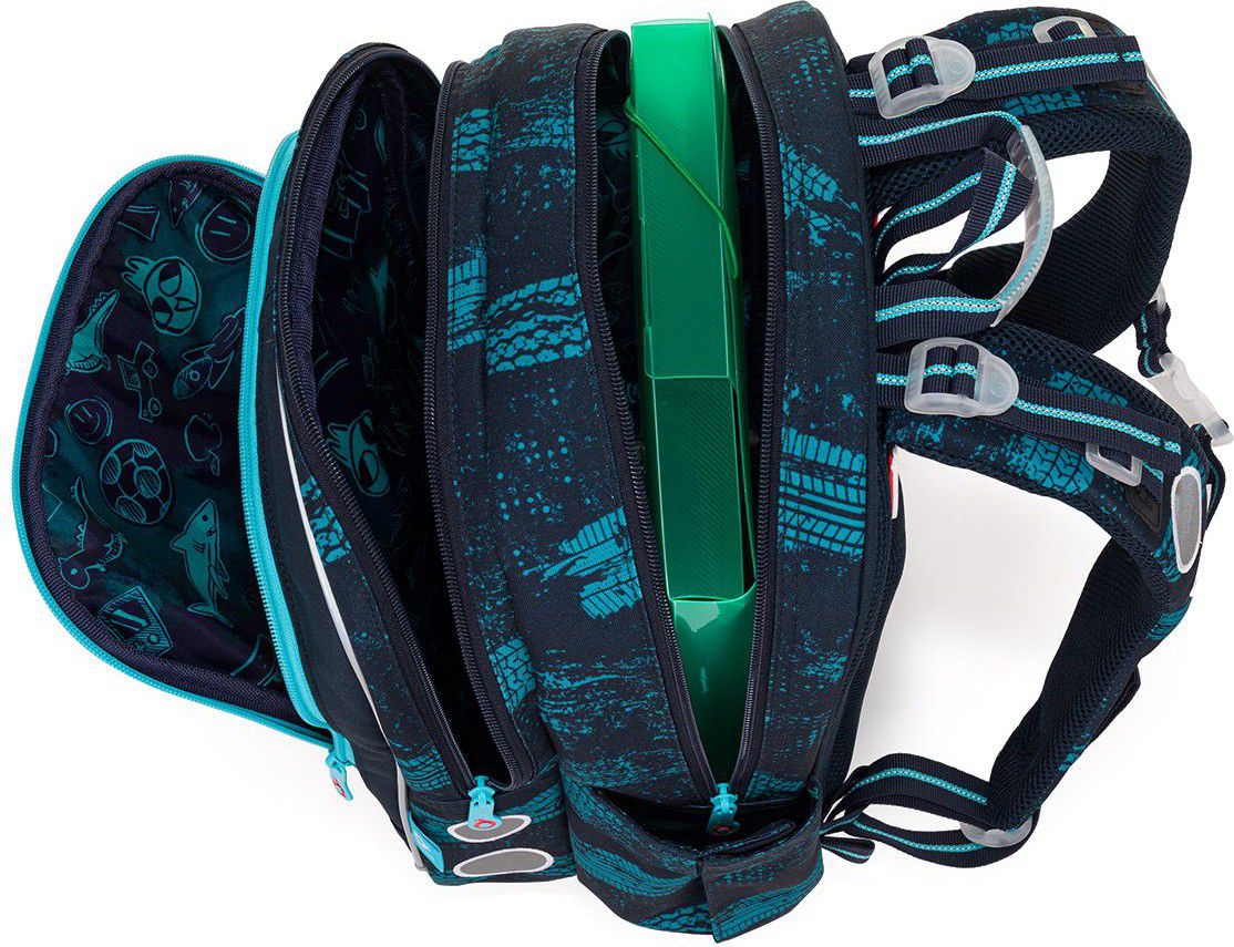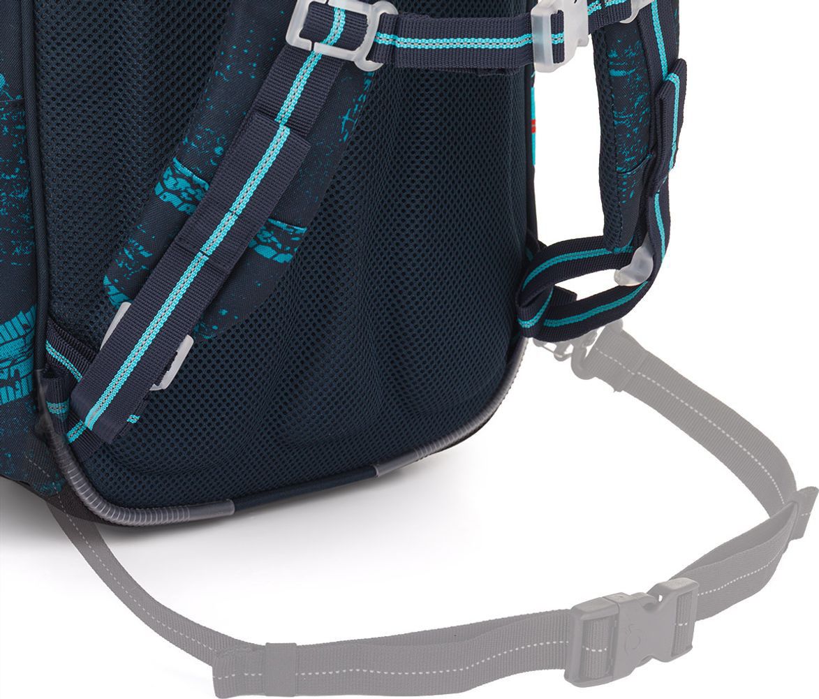 Batoh má dvě prostorné komory – do zadní je nejlepší ukládat nejtěžší učebnice nebo desky na sešity, do přední pak penál, svačinu nebo další drobnosti. V přední komoře nechybí ani síťová kapsa na zip a praktická jmenovka. Po stranách batohu je kapsa na lahev, která perfektně pasuje na model ZIVA o objemu 0,5 litru.