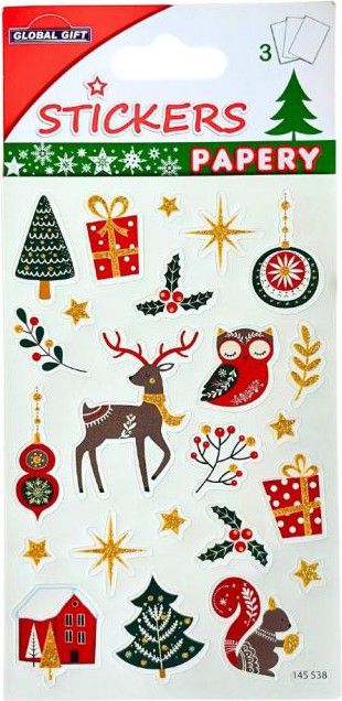 - Nálepky Papery s vánočními motivy se zlatými glitry.