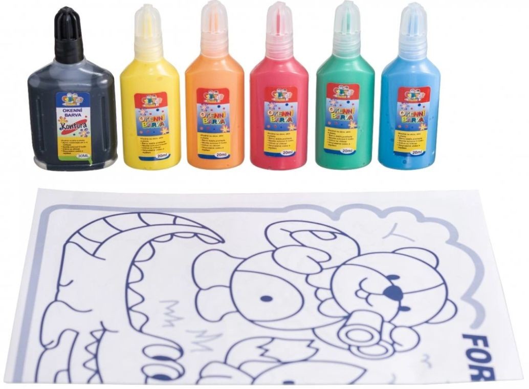 Okenní barvy 5 x 20 ml s černou konturou a předlohou.