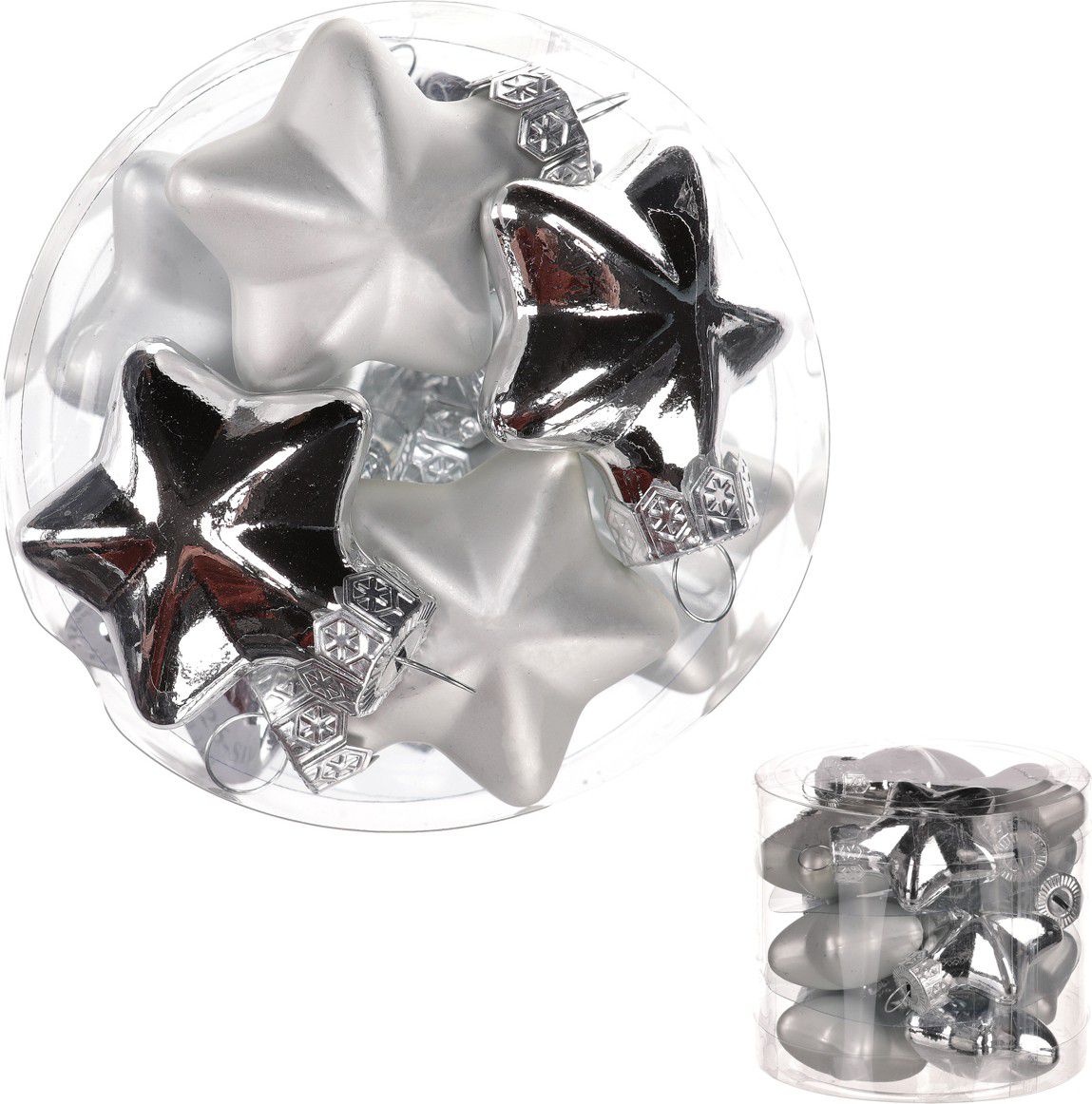Ozdoby skleněné-tvar hvězdy,stříbrné, pr. 4cm, cena za 1 balení (12 ks)
