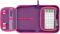 - Jednopatrový školní penál s 2 chlopněmi, prázdný obsahuje 25 gumových poutek pro uchycení psacích potřeb.