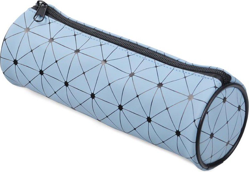 - Školní penál/etue válcového tvaru ve světle modré barvě.