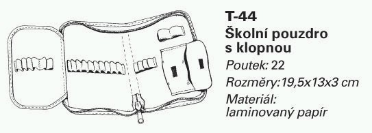 Kvalitní jenoduchý (jednopatrový) penál s 1 nebo 2 klopnami, pro středně velké množství psacích potřeb, s kapsičkou i rozvrhem hodin.