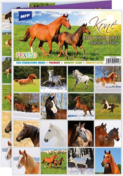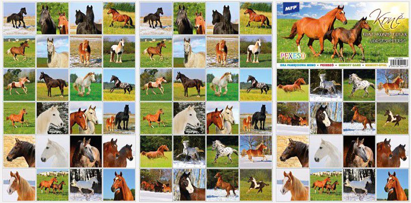 PEXESO je populární dětská stolní hra, která nikdy neomrzí a zapojit se můžou i dospělí. Pexeso - Koně - je vhodné pro milovnice a milovníky koní. Věděli jste, že slovo PEXESO vzniklo souslovím slov