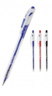 Jednorázové kuličkové pero s průhledným plastovým tělem a výběrem z barev modrá, červená, černá a zelená. Ideální pro každodenní použití.