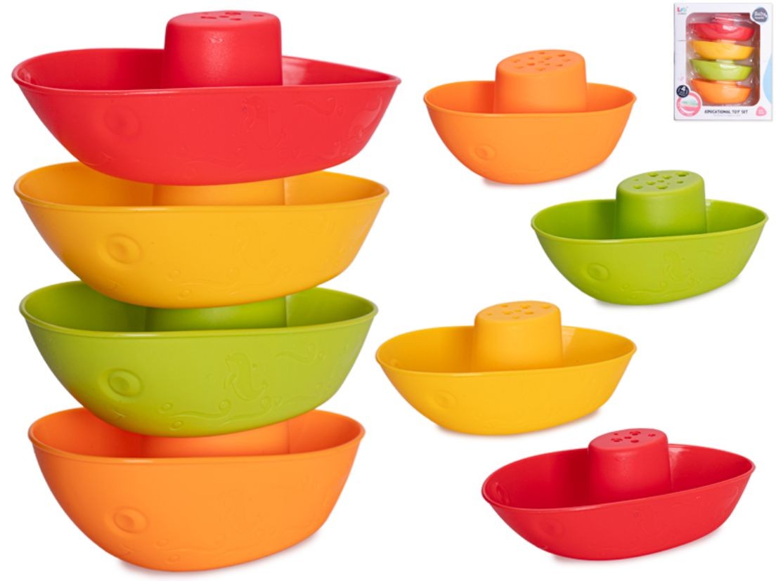 - Pyramida z barevných lodiček rozvíjí jemnou motoriku dítěte.