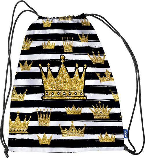 - Školní sáček na přezůvky se šňůrkou na zatažení s obrázkem korunek.