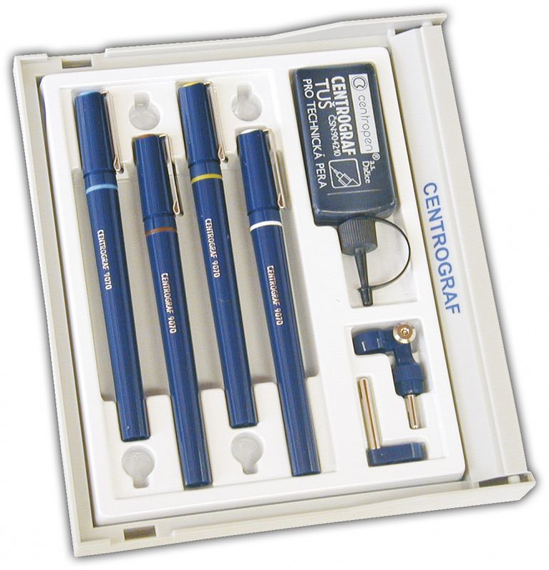 Tech. pera 0.25, 0.35, 0.5, 0.7 mm. Tuš, nástavce do kružítka. Odpovídá normám ISO, DIN a ČSN.