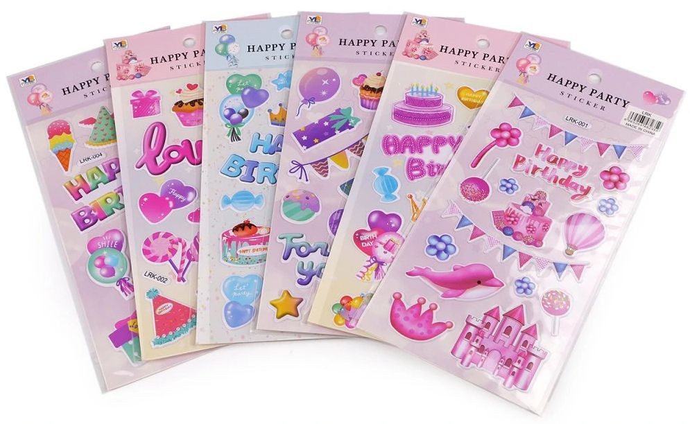 - Samolepky s různými narozeninovými motivy jsou kvalitně zpracované.