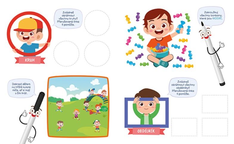 - Titul obsahuje 22 stíratelných stran s úkoly pro trénování předškolních dovedností.