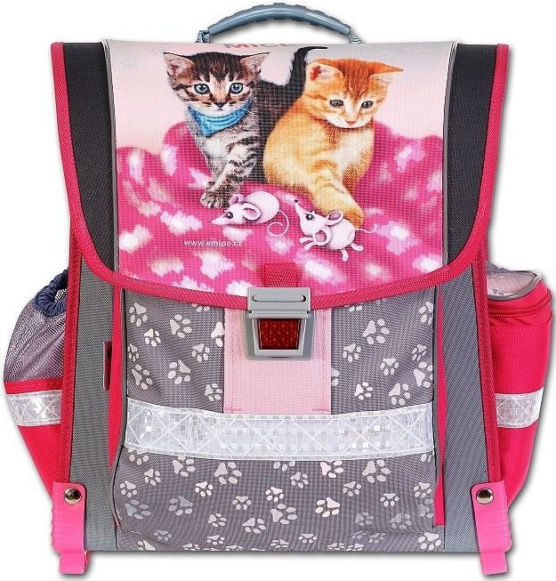- Přes celou šířku přední kapsy jsou našity dva bezpečnostní reflexní pásky a přes obě boční kapsy jeden. školní aktovka je uzavřena prostorově tvarovanou klopnou přes celý svůj obvod, včetně přední kapsy.