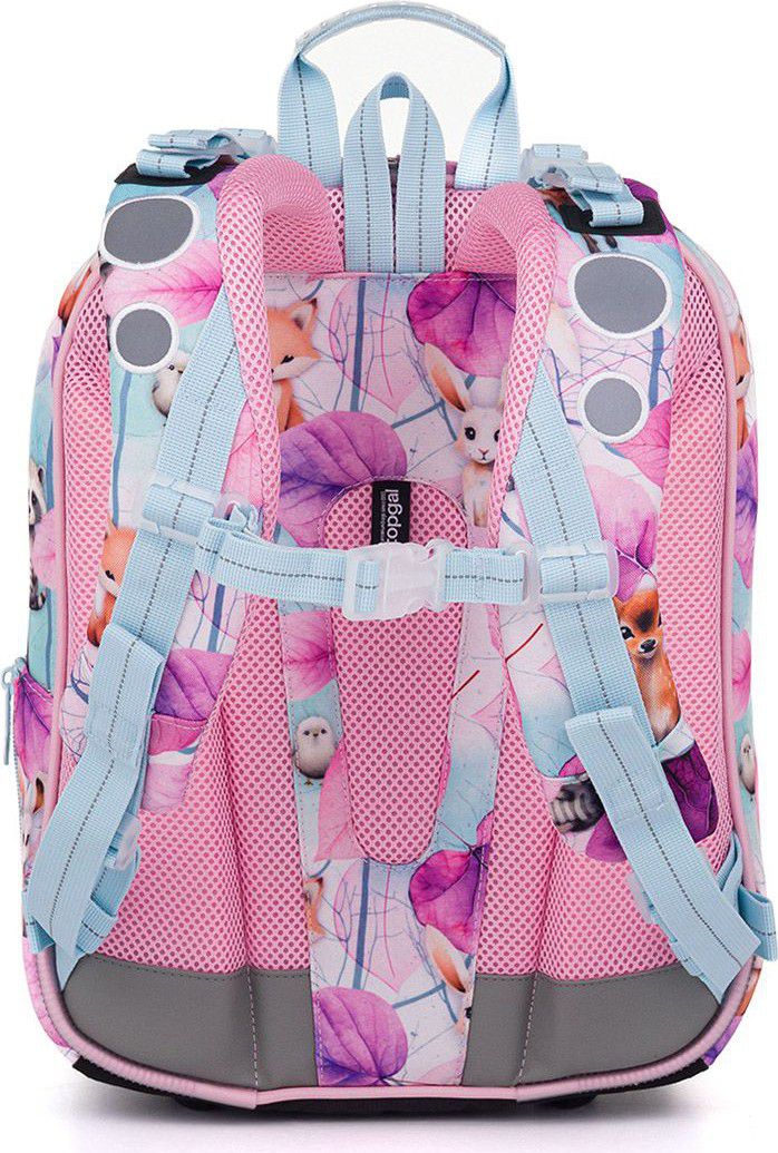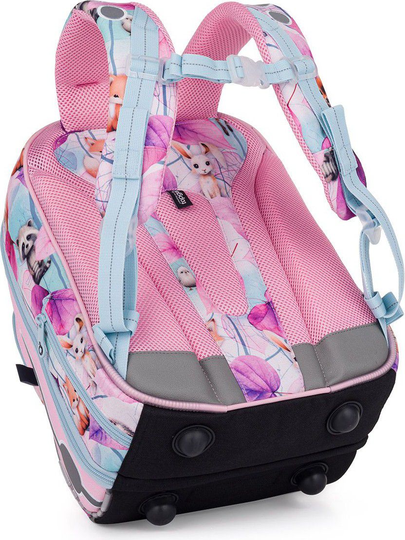 Model BEBE je kompromis mezi aktovkou a školním batohem, který je vhodný pro malé slečny s výškou 110 cm. Roztomilá lesní zvířátka doplňují jemné třpytky.