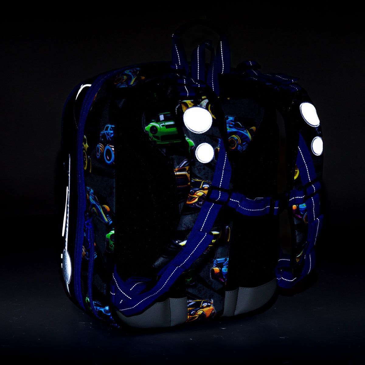 - reflexní prvky: na čele a bocích batohu, na ramenních popruzích