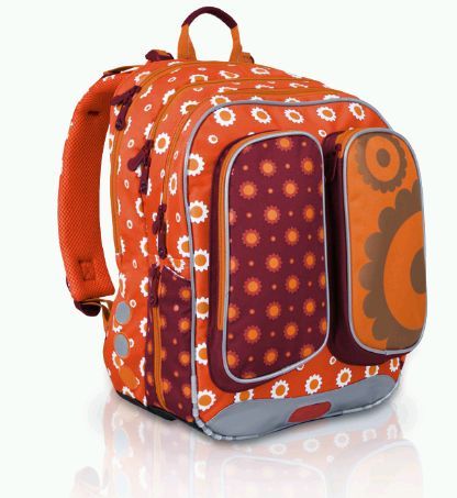 Klasický dvoukomorový školní batoh s hravým designem kytiček pro nejmenší školačky v 1. až 3. třídě. Ergonomicky tvarovaný zádový systém s polstrováním a vyjímatelným hliníkovým rámem společně s délkově nastavitelnými ramenními popruhy zajistí pohodlné a bezpečné používání tohoto batohu.