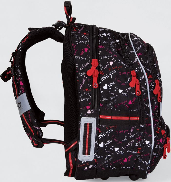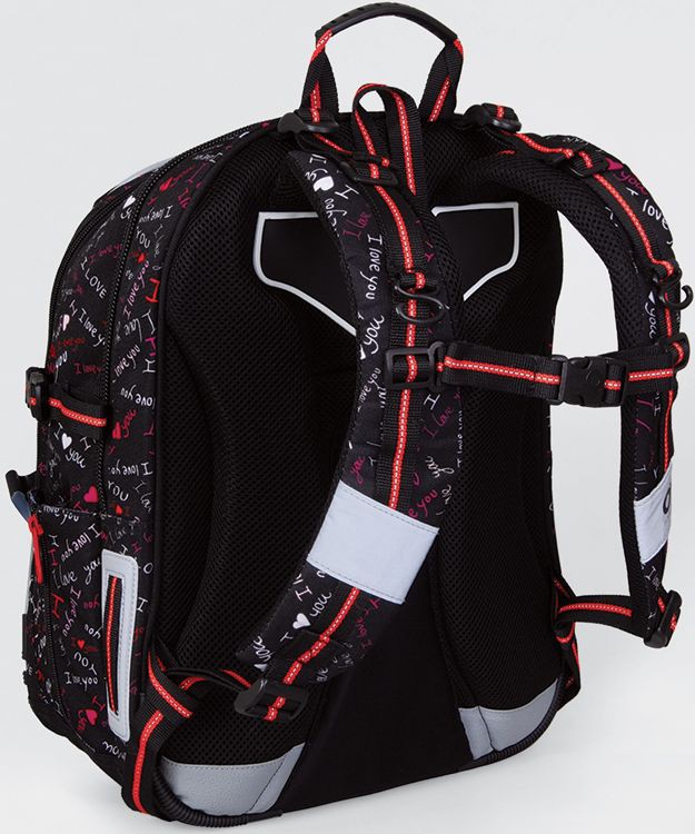 - Přední komora batohu je neprostornější, je zde umístěná jmenovka a praktická síťovinová kapsa. V zadní komoře je dostatek prostoru pro všechny školní pomůcky. Na čelní straně školního batohu využijete hned dvě kapsy na jednopatrový školní penál CHI 769 A nebo CHI 780 A (není součástí batohu) a jiné menší věci.