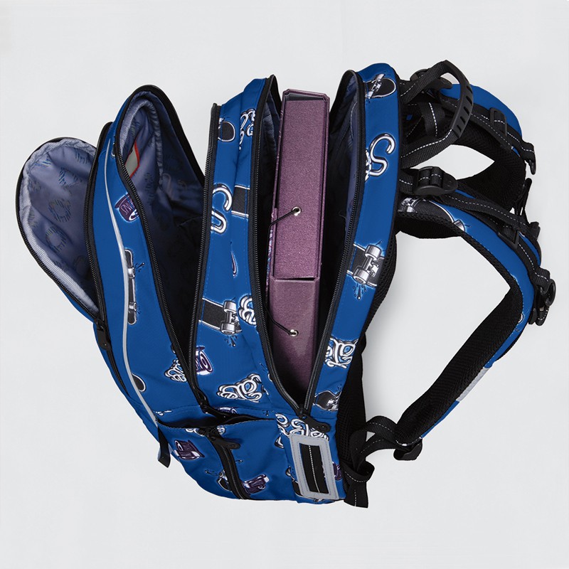 - Řada reflexních ploch zvyšuje bezpečnost batohu, který je díky nim dobře viditelný v dopravě. Pohodlí a funkčnost zajišťuje poutko na zavěšení batohu na lavici a úchyt s plastovou rukojetí pro přenášení batohu v ruce. Odolnost batohu dodává speciální dno z pevného materiálu TOPDURA, který se testuje v Institutu pro testování a certifikaci ve Zlíně.