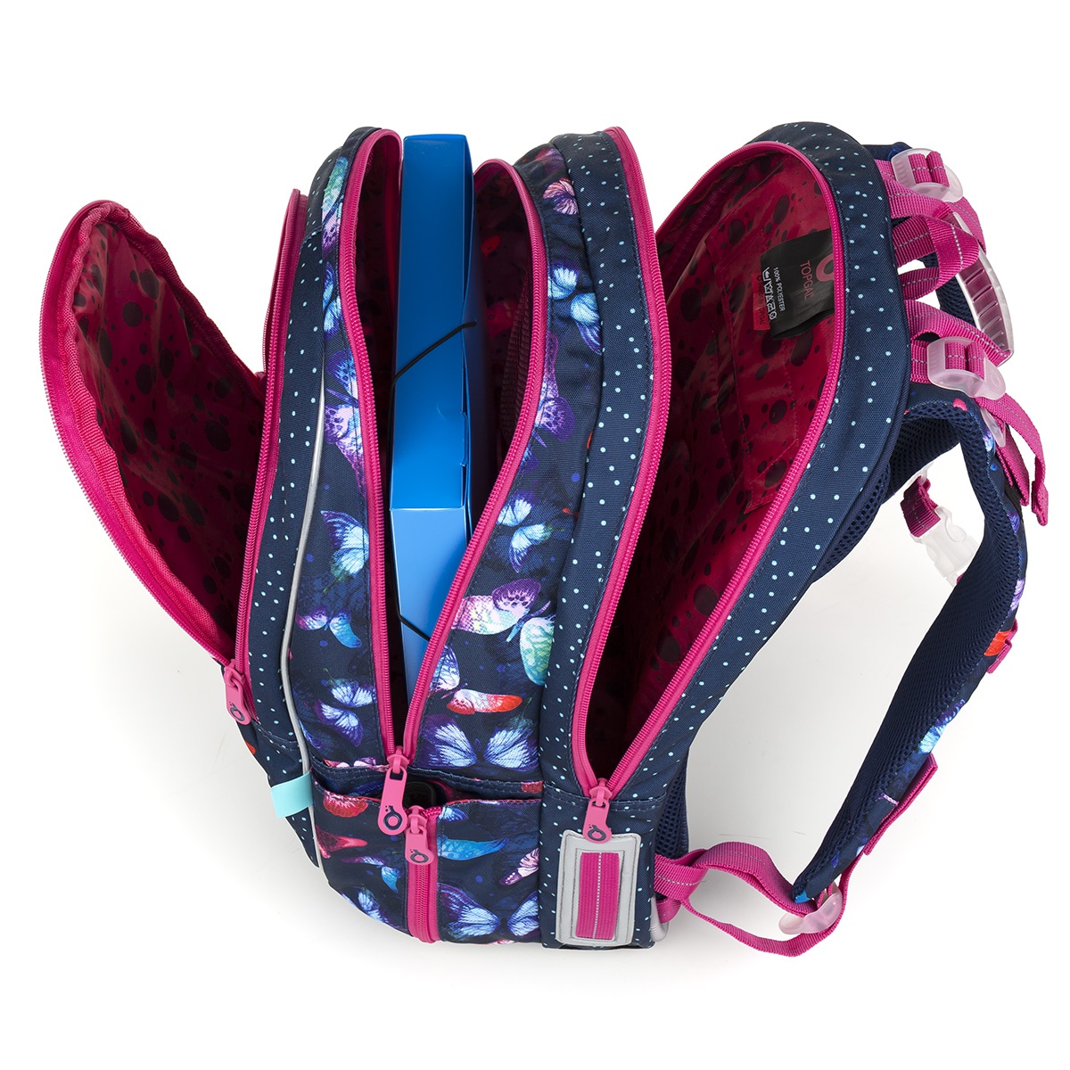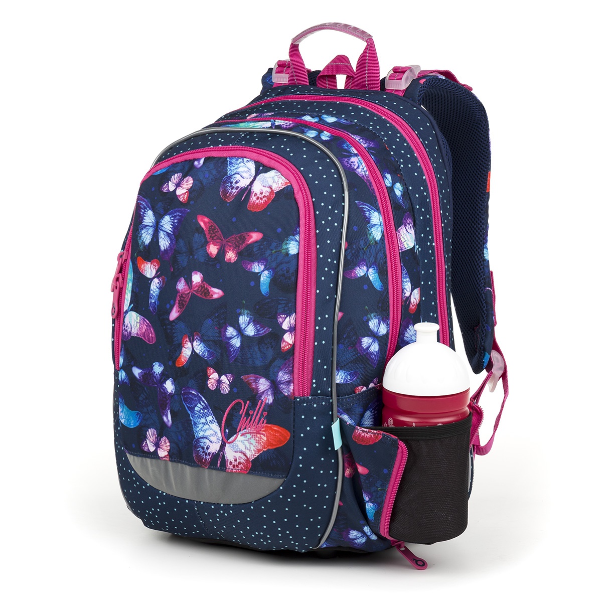 - Dvoukomorový střih batohu CODA s hlubokou přední kapsou se osvědčil jak pro kluky, tak i pro holčičky na prvním stupni ZŠ. A vůbec nepochybujeme, že tento model s motýlky a puntíky bude také hit!