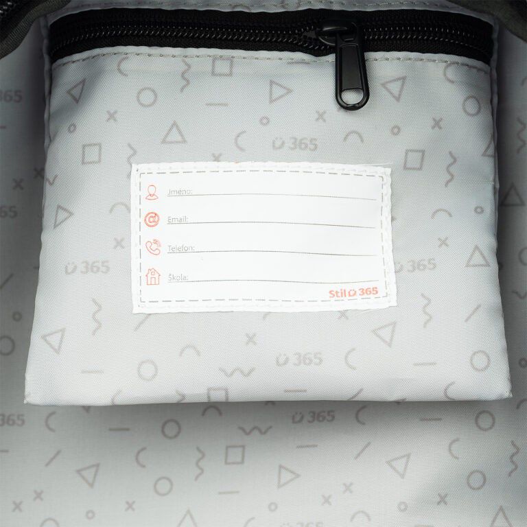 - Popruh na přední straně pro uchycení například mikiny cestou domů ze školy.
