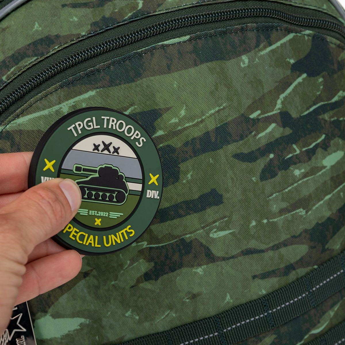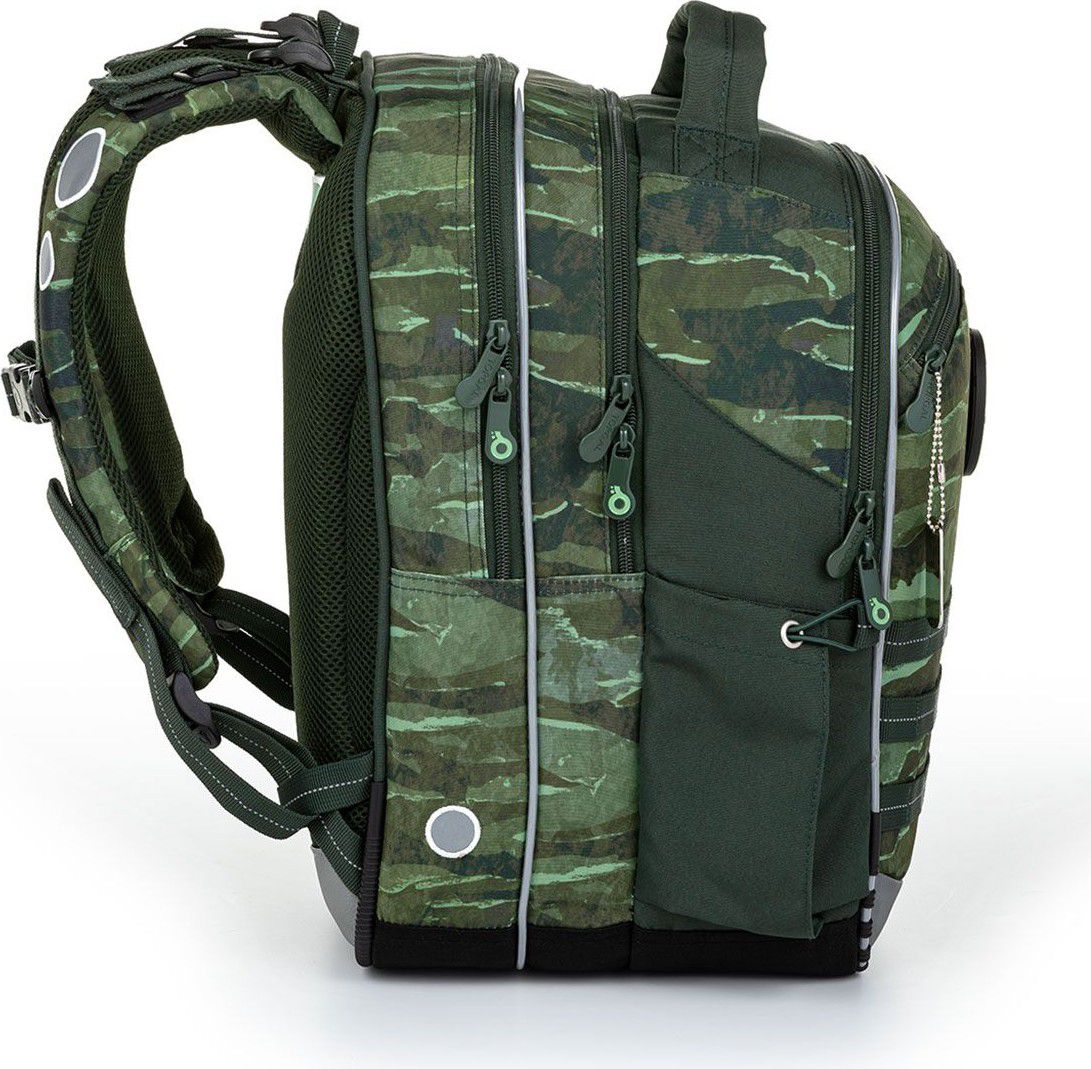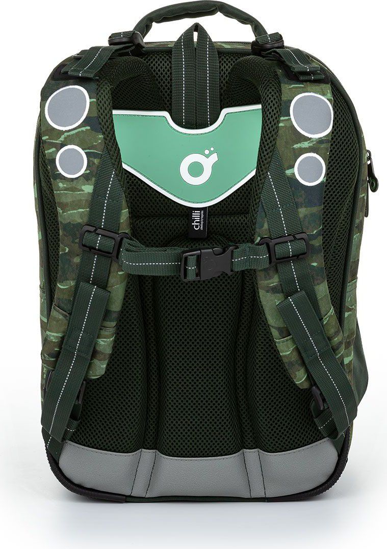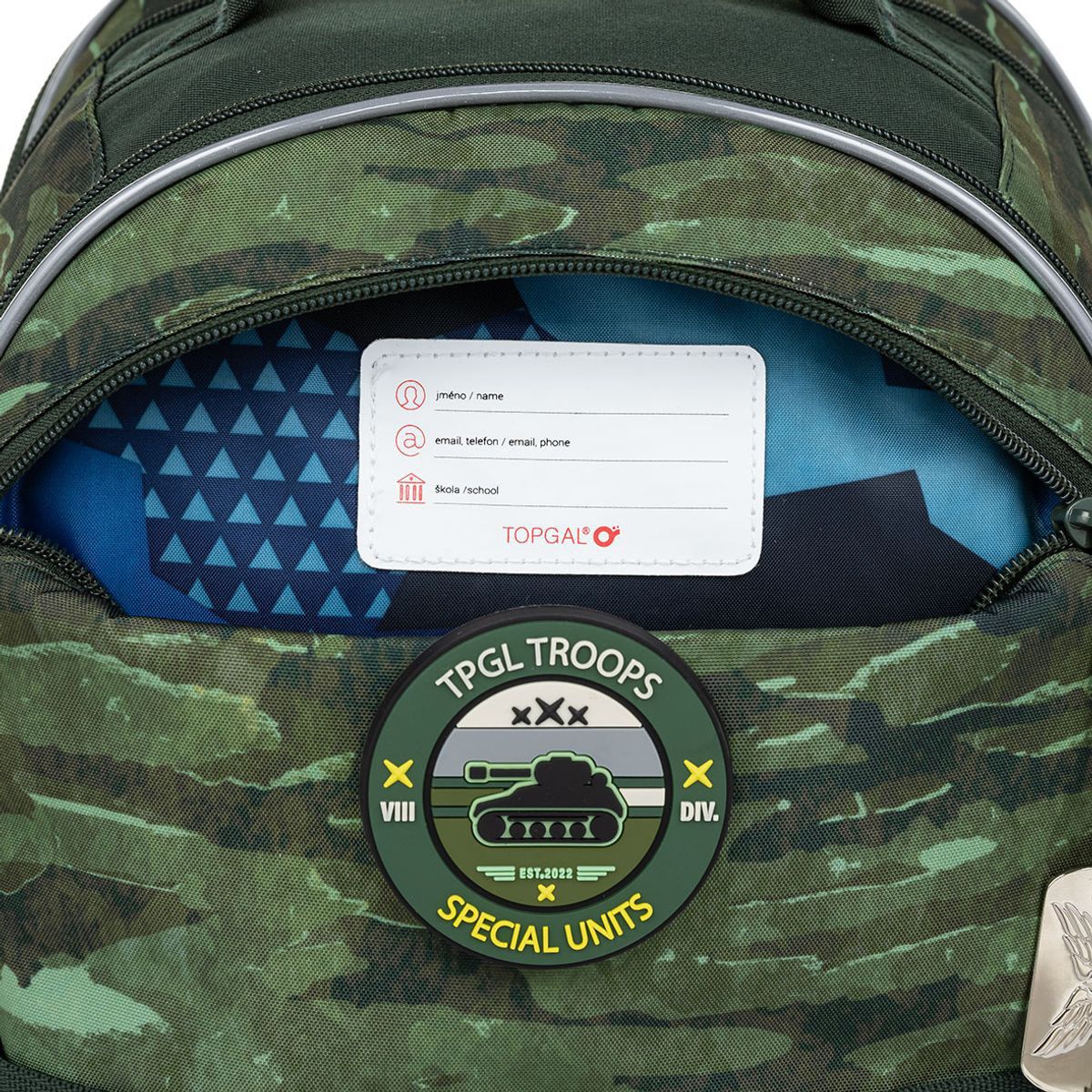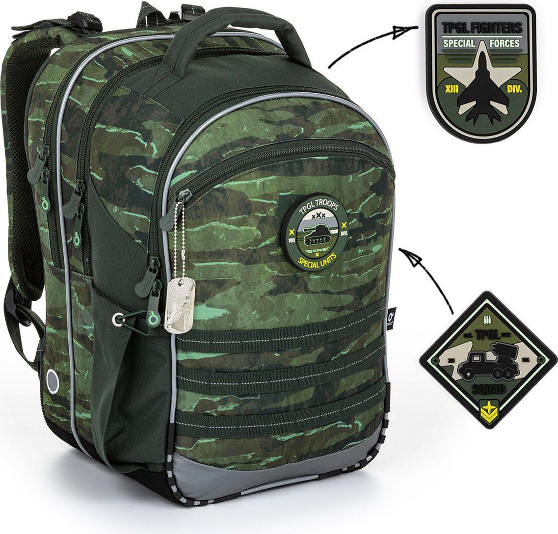 Tříkomorový model COCO je oblíbeným střihem drobných kluků v první třídě, ale i školáků ve vyšších ročnících prvního stupně ZŠ. Dominantou batohu je přívěsek vojenské známky a hravé magnety s vojenskou tématikou. A když o magnetky nebude zájem? Jednoduše se dají oddělat, aniž by narušily celkový design batohu.