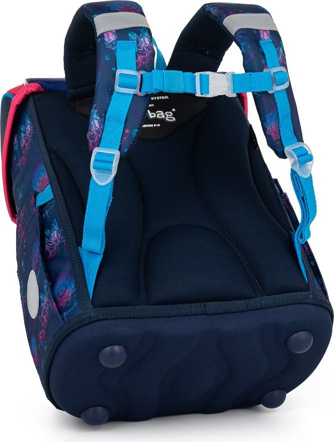 - Přední kapsička je určena na svačinu, nechybí řada reflexních prvků, díky kterým je aktovka viditelnější.
