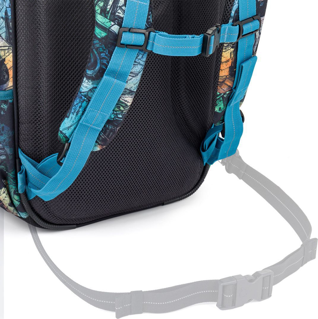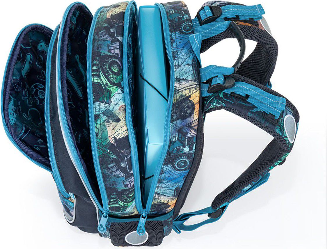 Spodní část batohu je vyrobená z odolného materiálu TOPDURA, který chrání batoh před oděrem a pomáhá mu držet tvar i při každodenním školním používání.