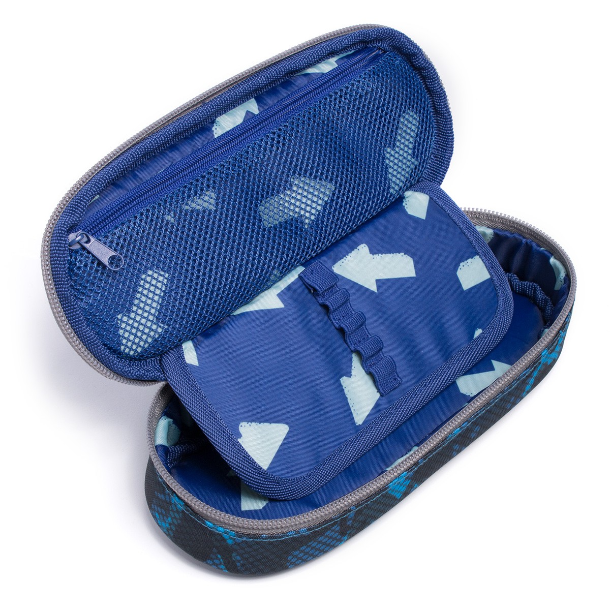 - Oválný penál pro všechny potřebnosti ocení spíše starší školáci. Uvnitř pouzdra je síťová kapsička na zip a klopa, na níž jsou umístěny gumičky pro uchycení celkem devíti tužek a propisek, které je potřeba mít přehledně uspořádané a po ruce.