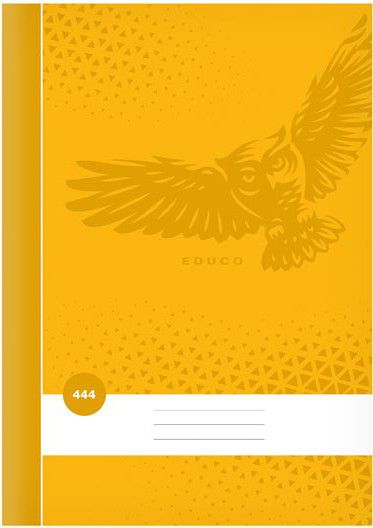 - Školní linkovaný sešit ve formátu A4, ve žluté barvě, s motivem sovy, v deskách z křídového papíru.
