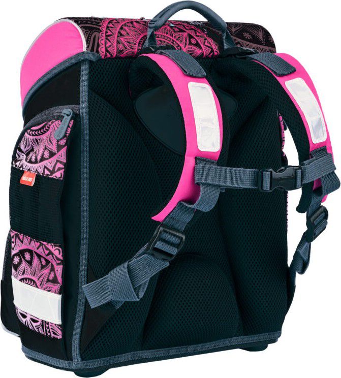 Kvalitní, ergonomicky tvarovaná, odlehčená školní aktovka je vybavena reflexními prvky a anatomicky tvarovanými zády s pevnou konstrukcí.