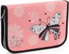 2. školní penál jednopatrový, prázdný s dvěma chlopněmi, o rozměru š. 19,5 x v. 3,5 x h. 13 cm