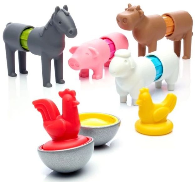 Ideální jednoduchá stavebnice SmartMax pro malé děti od 1 roku využívá ke spojování jednotlivých částí magnetismu. Děti si vždy ze tří částí postaví 6 zvířátek - koníka, prasátko, ovci, kravičku a 2 slepičky.