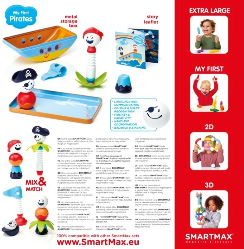 - Tato herní sada je také kompatibilní se všemi ostatními stavebnicemi SmartMax, což znamená, že možnosti hry jsou neomezené. Děti mohou rozvíjet svou kreativitu, koordinaci ruka-oko a rozpoznávat barvy a tvary, zatímco se baví v roli neohrožených pirátů. Magnetické prvky, jako jsou koule, těla, klobouky, flexibilní tyč, květina a vlajka, umožňují dětem tvořit a skládat podle vlastní fantazie.