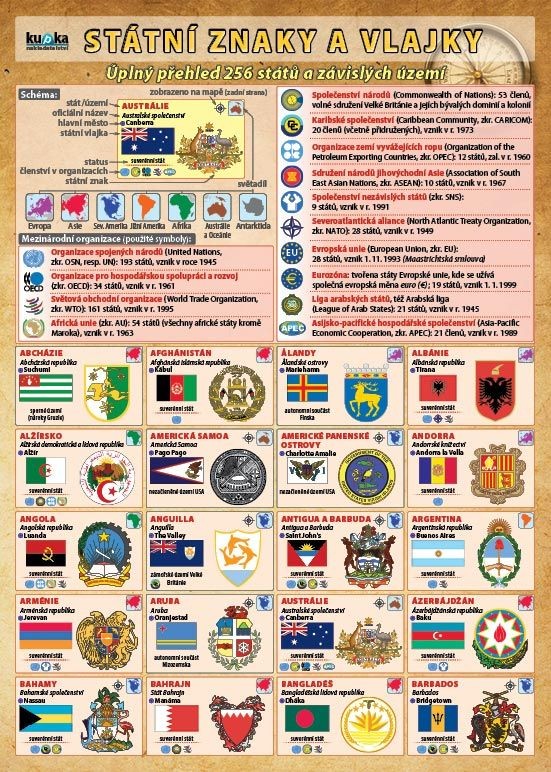 Úplný přehled státních znaků a vlajek 256 států a závislých území.