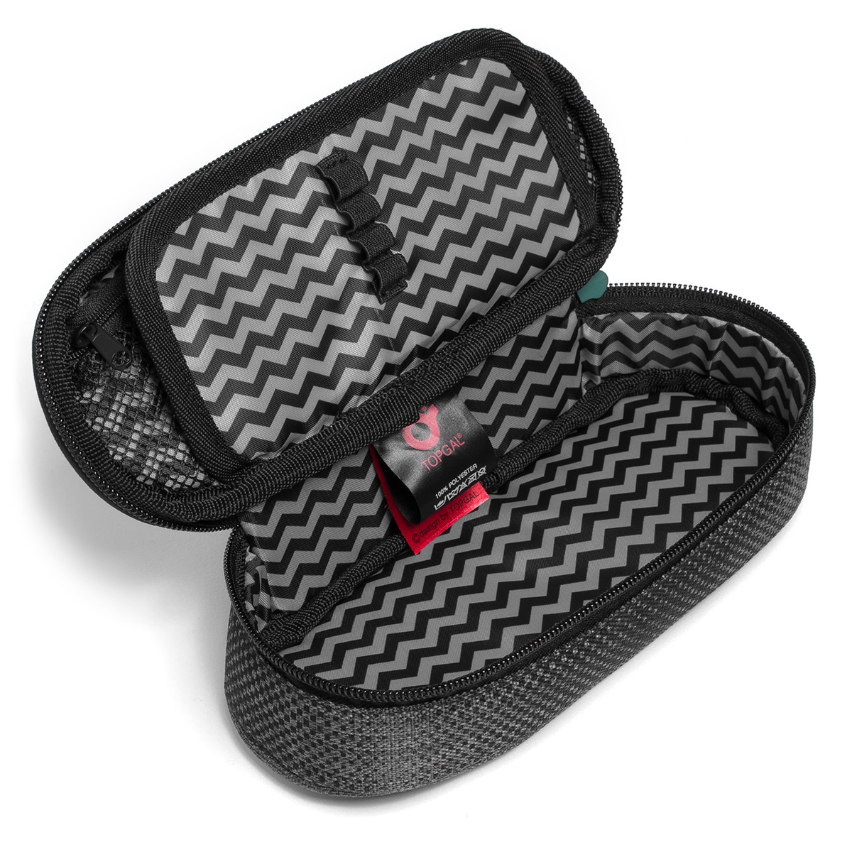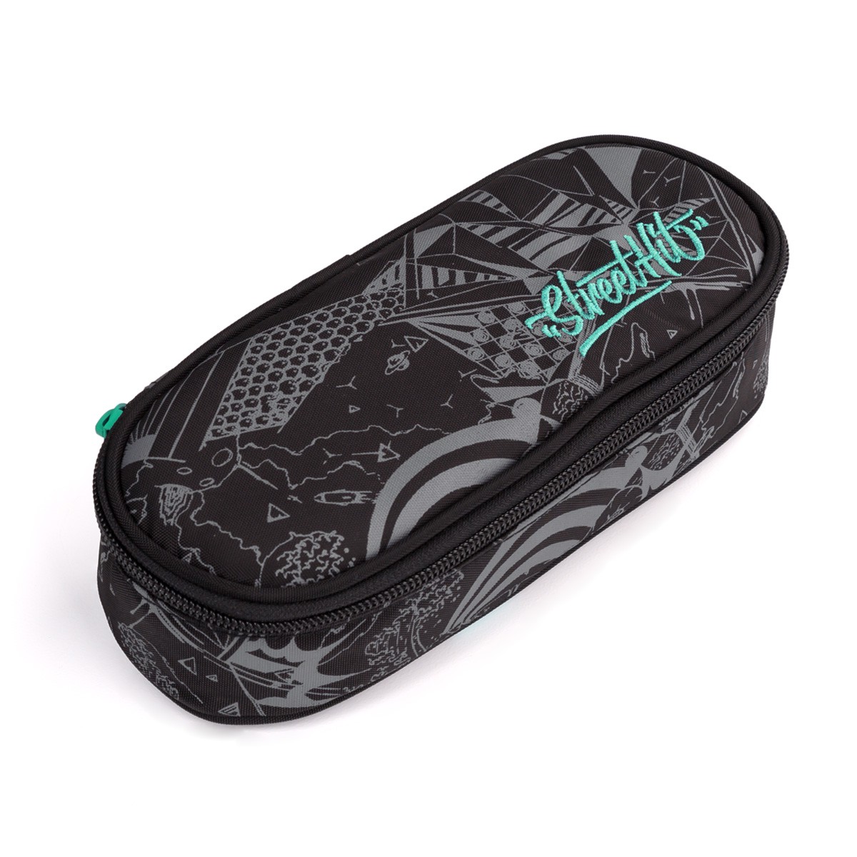 Oválný penál na všechny potřebnosti pro středoškoláky a starší školáky na druhém stupni ZŠ. Uvnitř pouzdra je síťová kapsička na zip a klopa, na níž jsou umístěny gumičky pro uchycení celkem devíti tužek a propisek, které je potřeba mít přehledně uspořádané a po ruce. Prostor pod klopou pak umožňuje volně umístit další psací potřeby – pastelky, fixy, prostě cokoliv potřebujete.