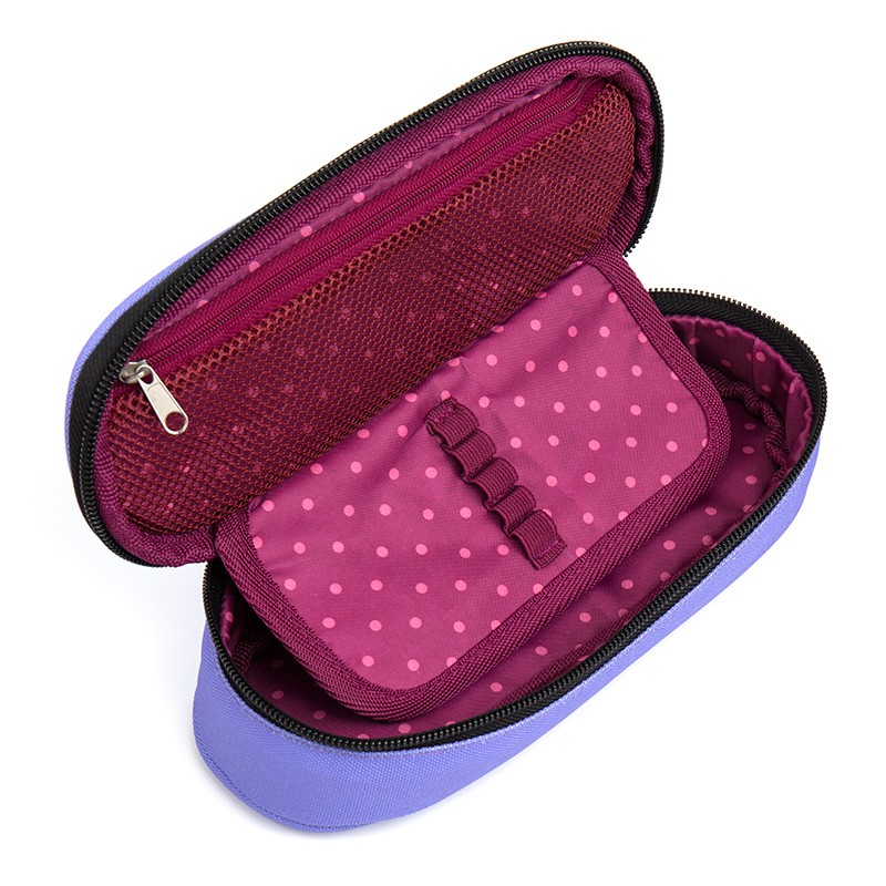 - Polstrované studentské pouzdro, pro ochranu psacích potřeb, které je uzavíratelné pomocí kvalitních zipů s velkými taháčky pro snadnou manipulaci.