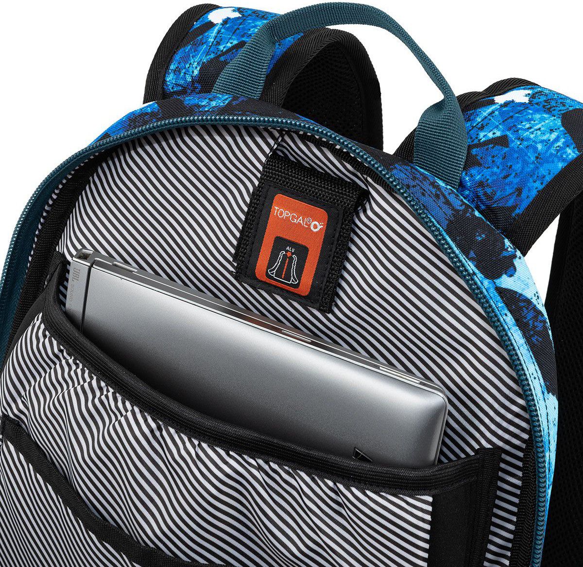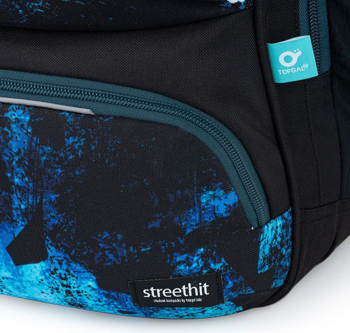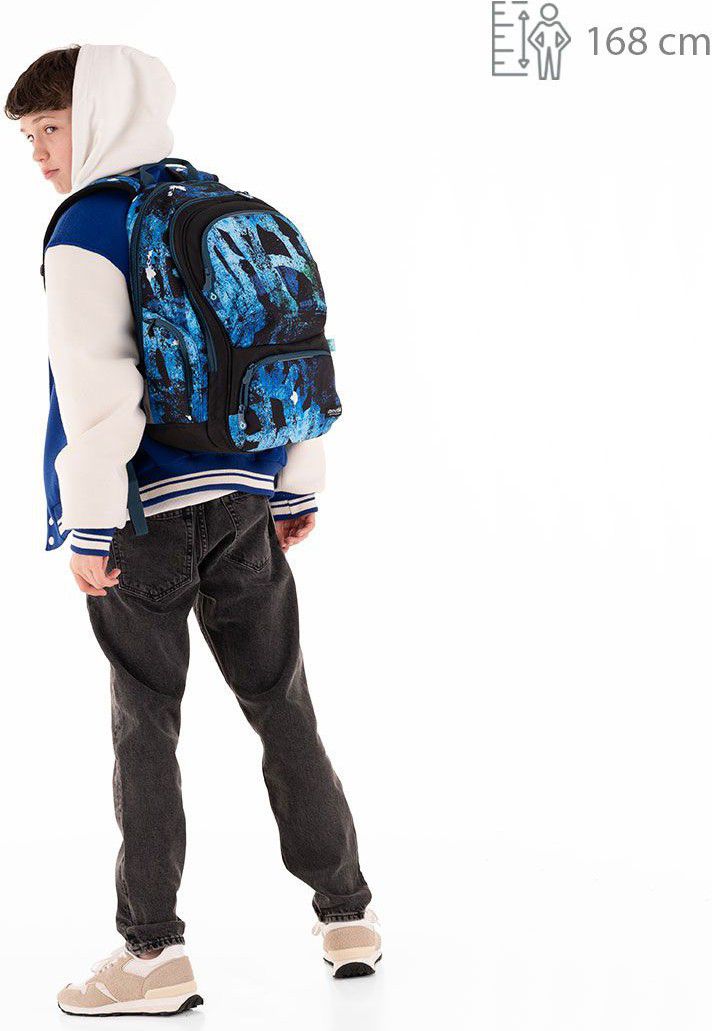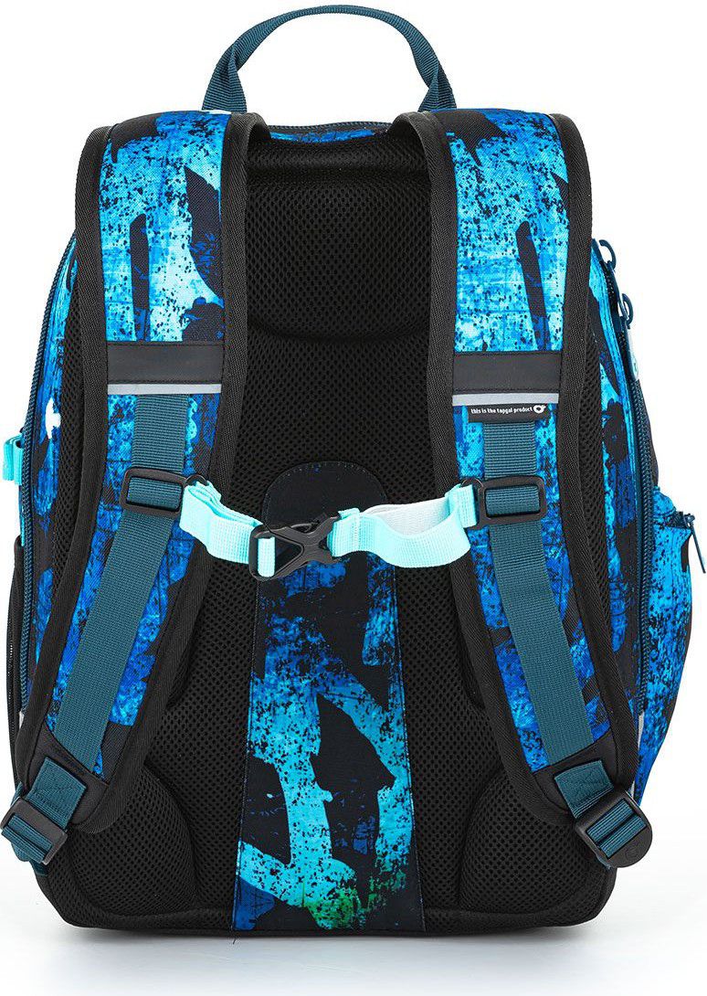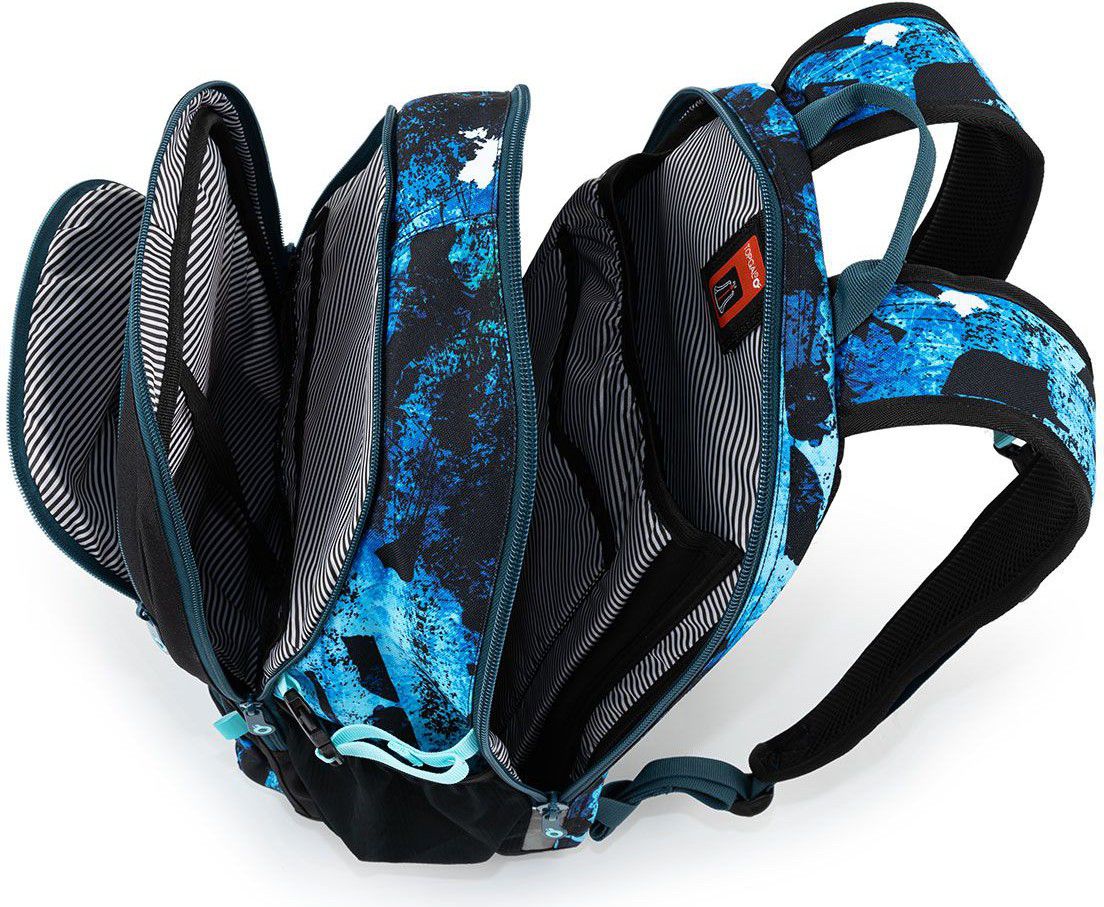 Dvě objemné komory pojmou všechno učení. Nejvíce se jej vejde do zadní objemné komory, ve které najdete i polstrovanou kapsu na notebook a menší polstrovanou kapsu, třeba na mobil. V přední užší komoře je pak ještě síťová kapsa na drobnosti a karabina na klíče v dlouhé pružence. Přední kapsy můžete použít na drobnosti, svačinu, nebo třeba na uložení pouzdra ETUE 22034 ve stejném designu.