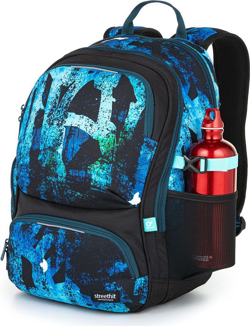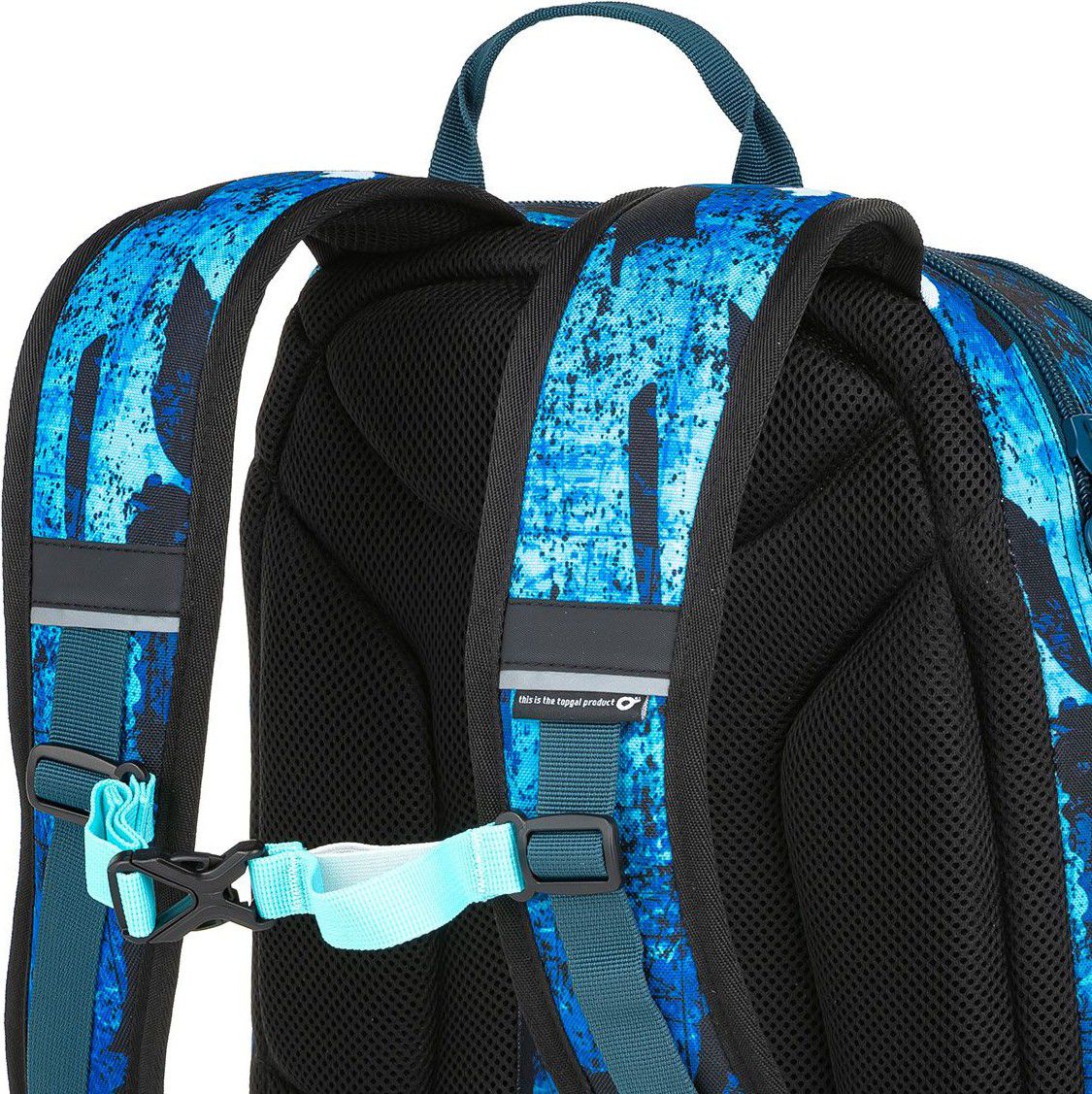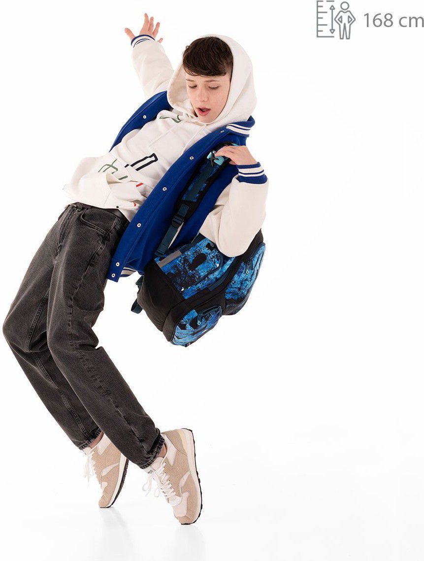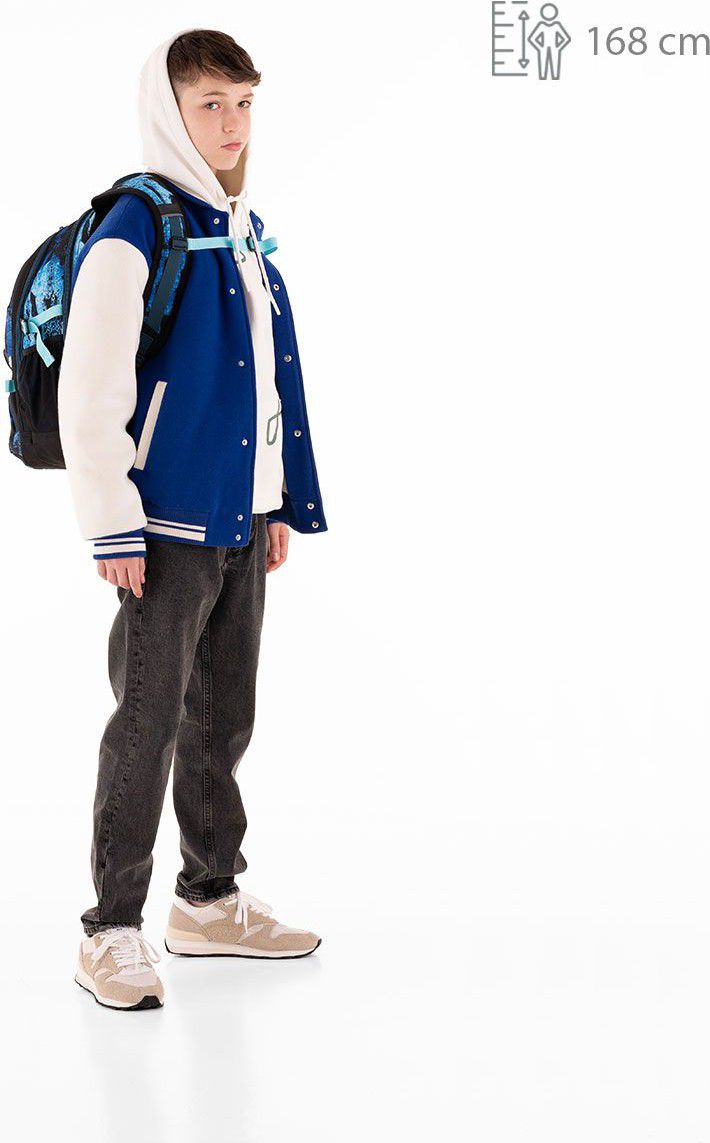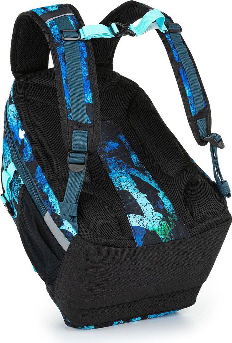 Dvě objemné komory pojmou všechno učení. Nejvíce se jej vejde do zadní objemné komory, ve které najdete i polstrovanou kapsu na notebook a menší polstrovanou kapsu, třeba na mobil. V přední užší komoře je pak ještě síťová kapsa na drobnosti a karabina na klíče v dlouhé pružence. Přední kapsy můžete použít na drobnosti, svačinu, nebo třeba na uložení pouzdra ETUE 22034 ve stejném designu.