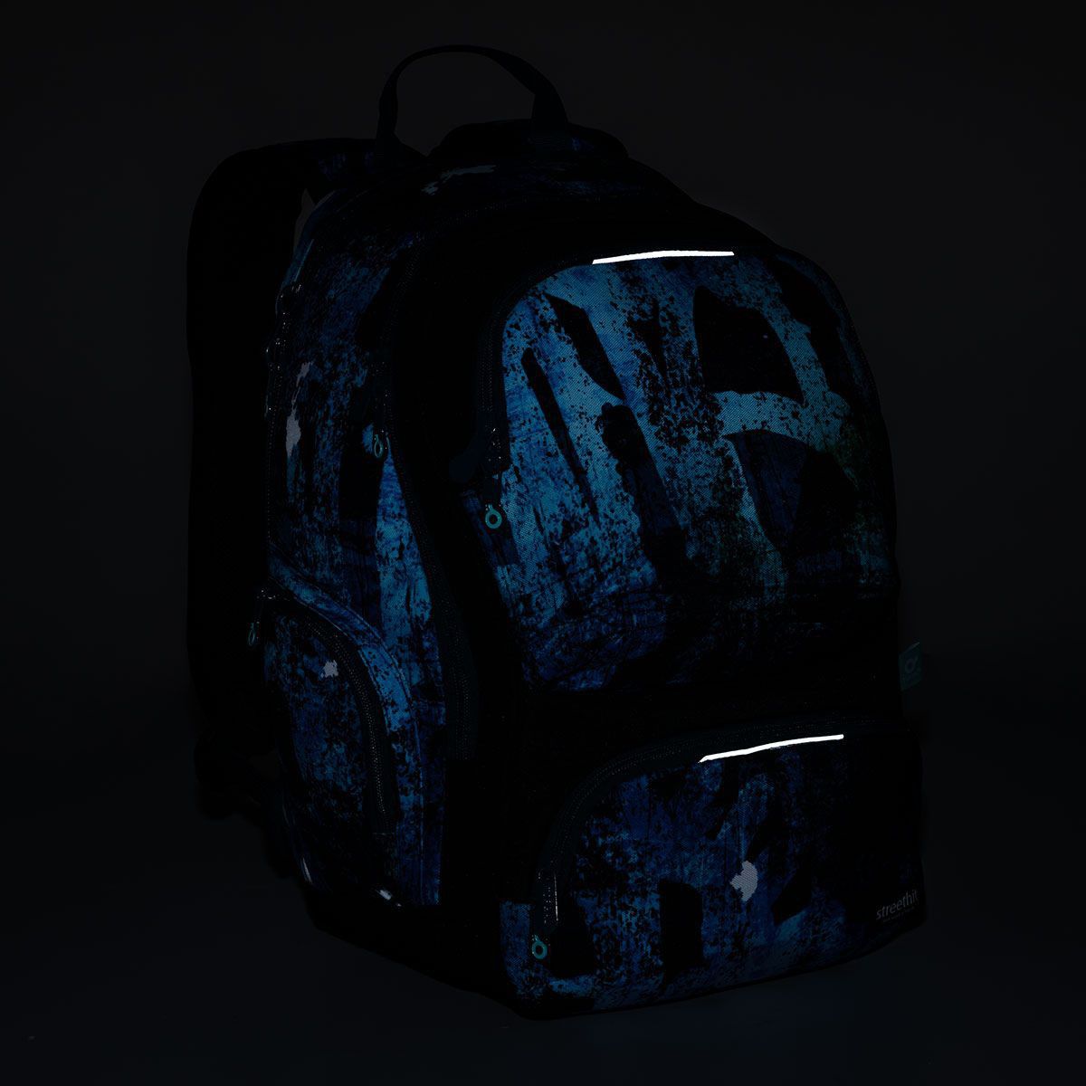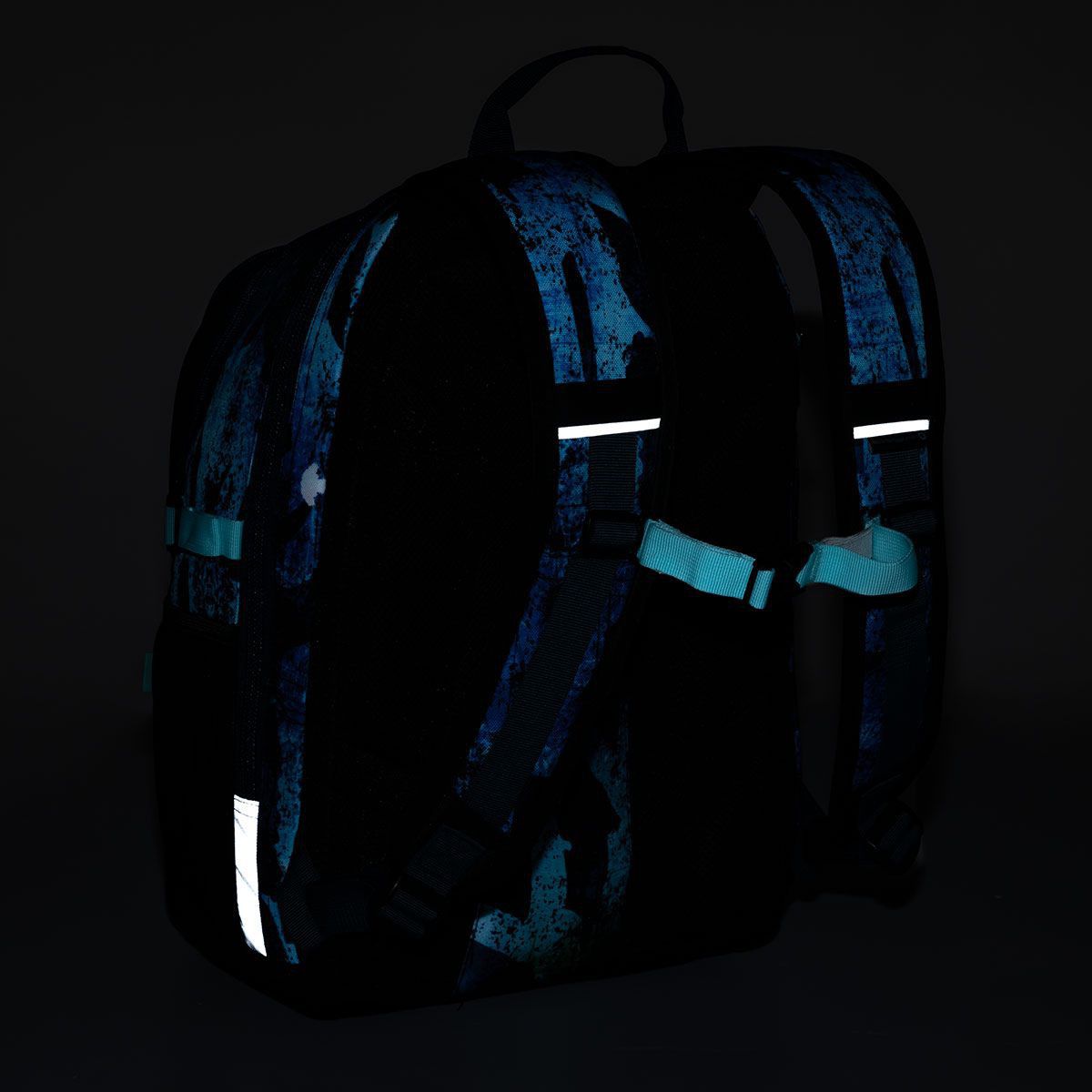 Reflexní prvky jsou jemně zasazené do střihu batohu tak, aby byly na všech jeho stranách - čele, bocích i na ramenních popruzích. Látka batohu je opatřena zátěrem proti dešti.