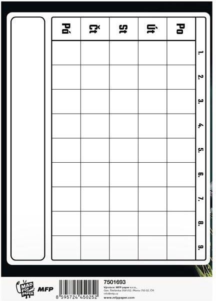 Pro všechny malé fotbalisty a fanoušky, kteří chtějí mít ve svých školních povinnostech stejný řád jako na hřišti. Úkolníček MFP ve formátu A6 s fotbalovým motivem slouží k zapisování domácích úkolů, poznámek z hodin i dalších školních zadání, která je potřeba mít přehledně zaznamenaná. Vnitřní uspořádání nabízí dostatek místa pro zápisy a pomáhá udržet přehled v tom, co je potřeba během týdne splnit. ÚKOLNÍČEK OBSAHUJE: - osobní údaje - telefonní čísla - prostor pro poznámky - malou násobilku - geometrické a matematické vzorce - vyjmenovaná slova - rozvrh hodin Formát: A6 Motiv: fotbal Počet stran: 40 Uvedená cena je za 1 ks.